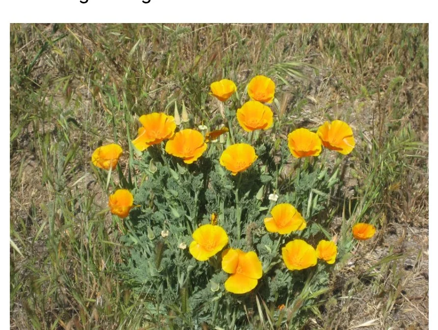 In addition to lovely weather, a great reason to take a trip in the springtime has to be the flowers one finds along the roadside. Here are some wild California Poppies we saw growing in a field:
